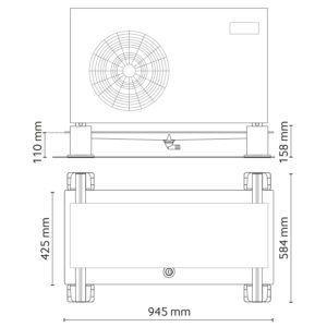 Permite instalarea tavii de drenaj a condensului la o înălțime de doar 110 mm de la sol. Este fabricat din material termoplastic de înaltă rezistență. Suporturile de sol sunt stivuibile și permit aplicații multiple pe înălțime. Barra de conectare permite variații de lungime și adâncime. Suporturile de sol includ un garnitură din cauciuc TPE pentru amortizarea vibrațiilor, asigurând o instalare sigură pe sol. Brackets din oțel inoxidabil pentru fixarea suporturilor pe sol. De asemenea, sunt disponibile ca suporturi de sol fără tava de drenaj a condensului.